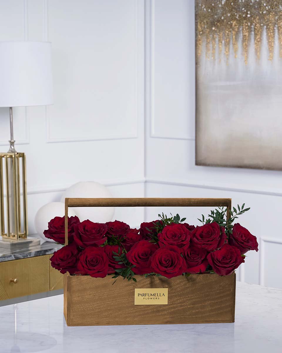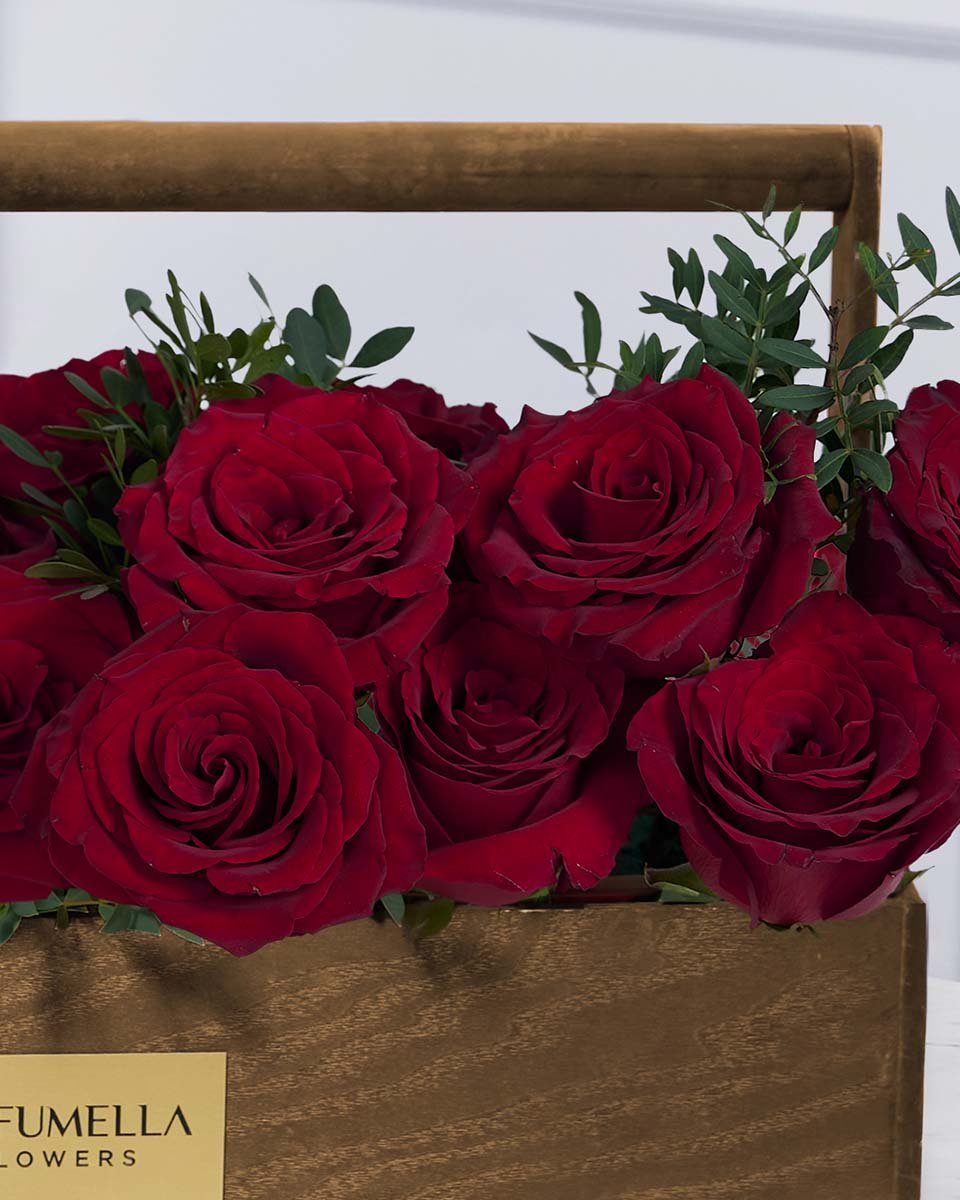 Classic red roses with a hint of lush foliage, timeless love in every stem.